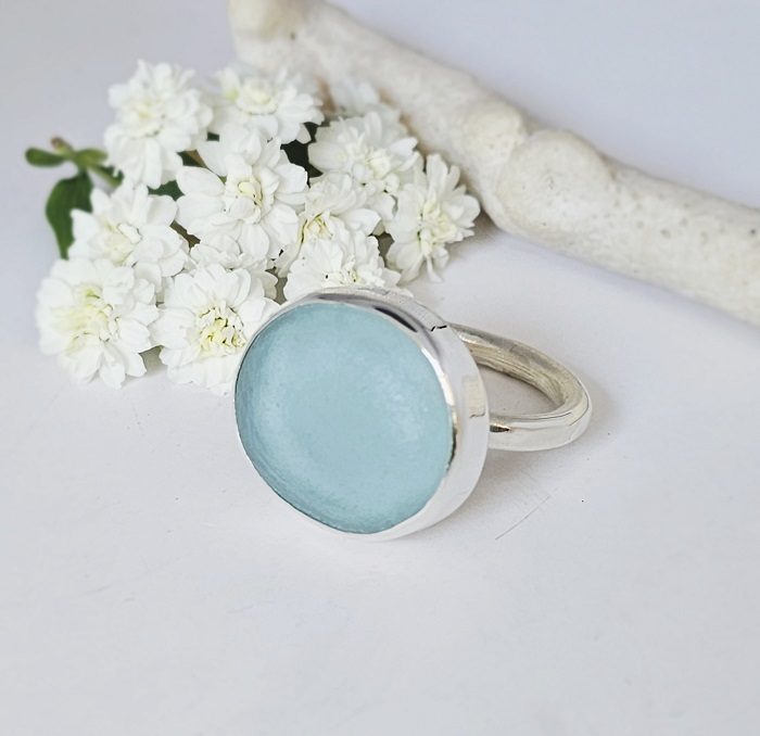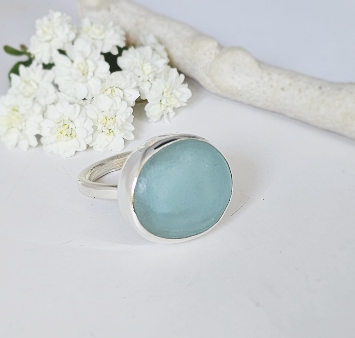 Carry a drop of the ocean with you wherever you go with this brilliant timeless seaglass statement ring