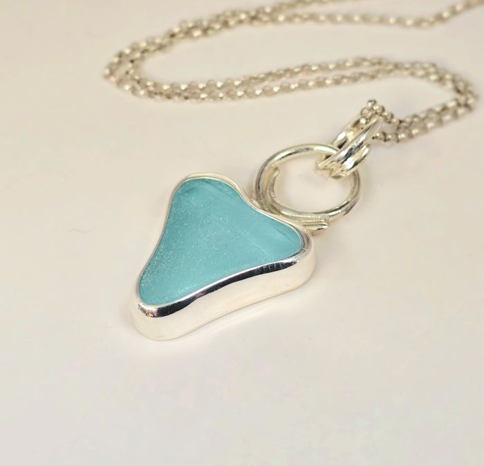 Seaglass pendant sourced from the Mornington Peninsula set in sterling silver on a delicate 45cm belcher chain,