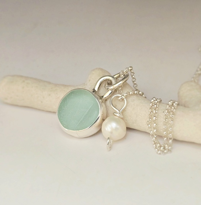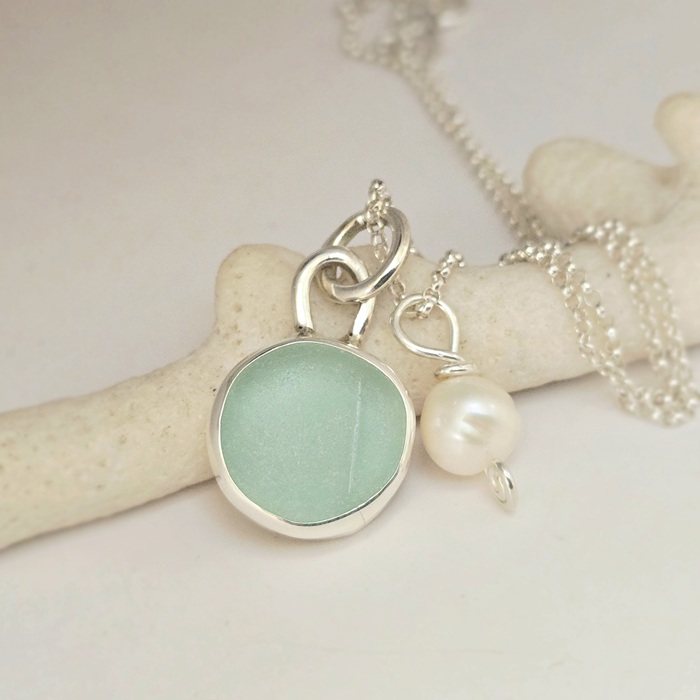 Materials: 925 Sterling silver, sea glass, fresh water pearl
