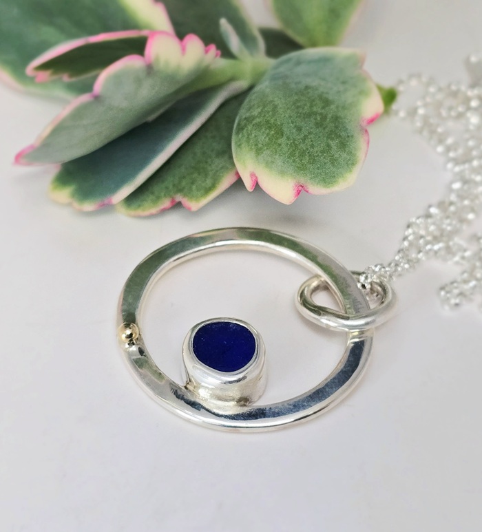 Seaglass Pendant, Sterling Silver & Touch of Gold